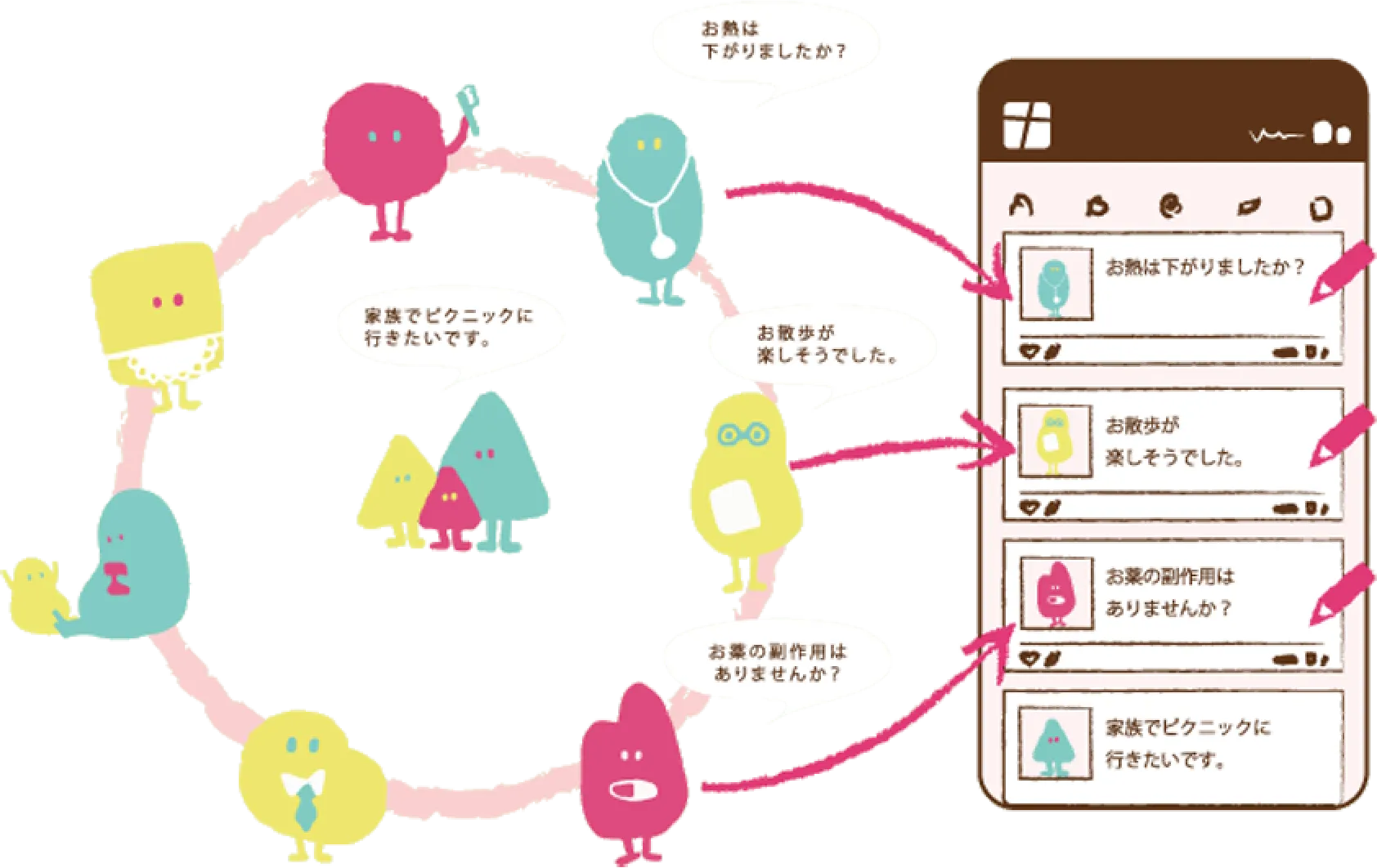 そこにご家族や医療・福祉・介護・教育関係者が日々の情報を投稿することによって、