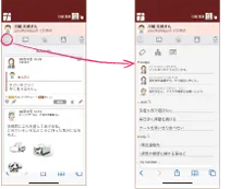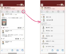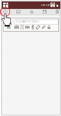 ❶児童のタイムラインを表示したらを左上のバーガーメニューをタップして掲示板画面に移動します。