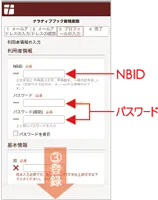 - ❺最初にNBIDとパスワードを決めます※。引き続き利用者の情報を入力して登録します。