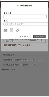 ❸移動したら「新規作成」をタップしてinfo編集画面を開きます。