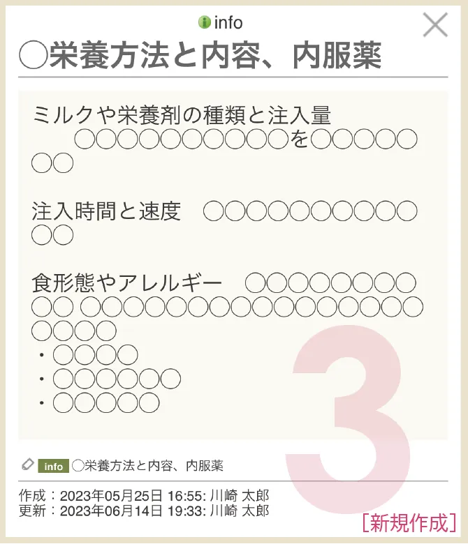 重要 ナラティブブックを使い始めるときに、infoに次の3つの情報を記入しておいてください